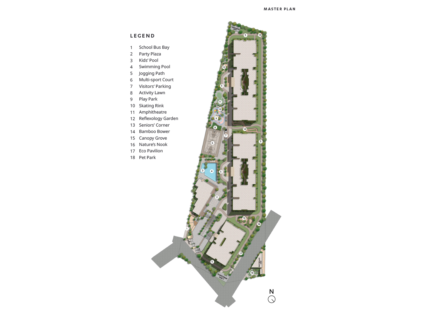 Amenities include a 2-storeyed clubhouse, swimming pool, multi-sport court, play park, amphitheatre, gym, yoga & dance studio, games room, seniors’ corner, pet park, reception lounge, eco pavilion, and landscaped gardens.